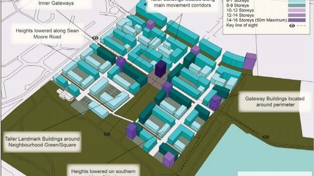 Up to 3,000 apartments in blocks up to 50 metres – or 16 storeys – tall are planned for the former Irish Glass Bottle and Fabrizia sites, which comprise the largest available landbank within the fast-track planning zone set up to regenerate the city’s industrial east end.