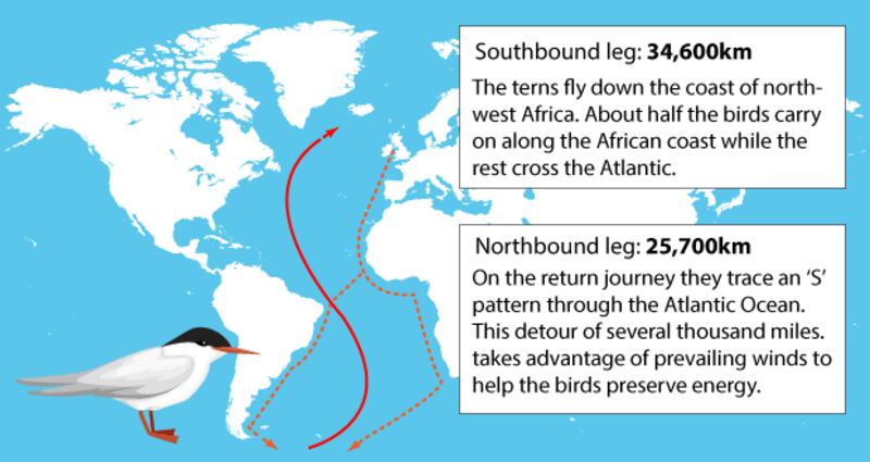 During our summer months, they breed in Ireland and other areas of the Northern Hemisphere and then fly all the way to the Southern Ocean, off Antarctica, where they wait out the northern winter. This means that they see more daylight each year than any other creature on the planet.