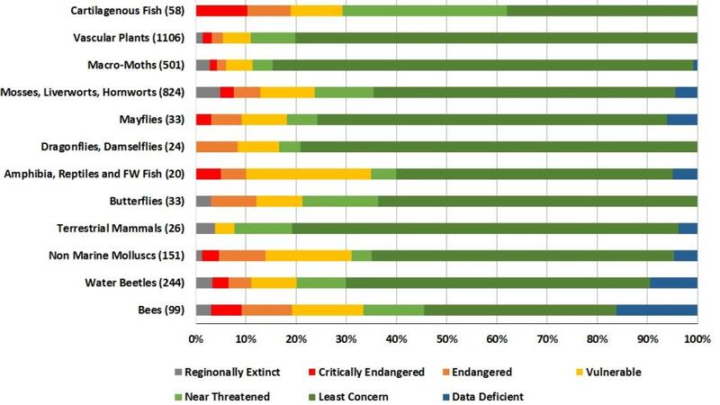 For example, about one-third of the 99 species of bees in Ireland are now either regionally extinct or vulnerable. Levels are high too for species of cartilaginous fish, reptiles, freshwater fish and non-marine molluscs, among others.
