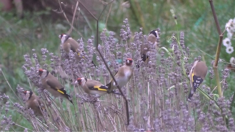 We were visited at the end of December by a flock of 15 goldfinches which feasted on lavender seeds for about half an hour and then headed off.