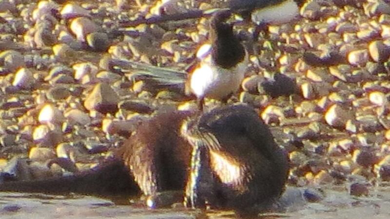This photograph of an otter dining on a lamprey, and being watched by a pair of magpies, was taken on the River Foyle below Lifford Bridge. – Albert Johnston, Ramelton, Co Donegal