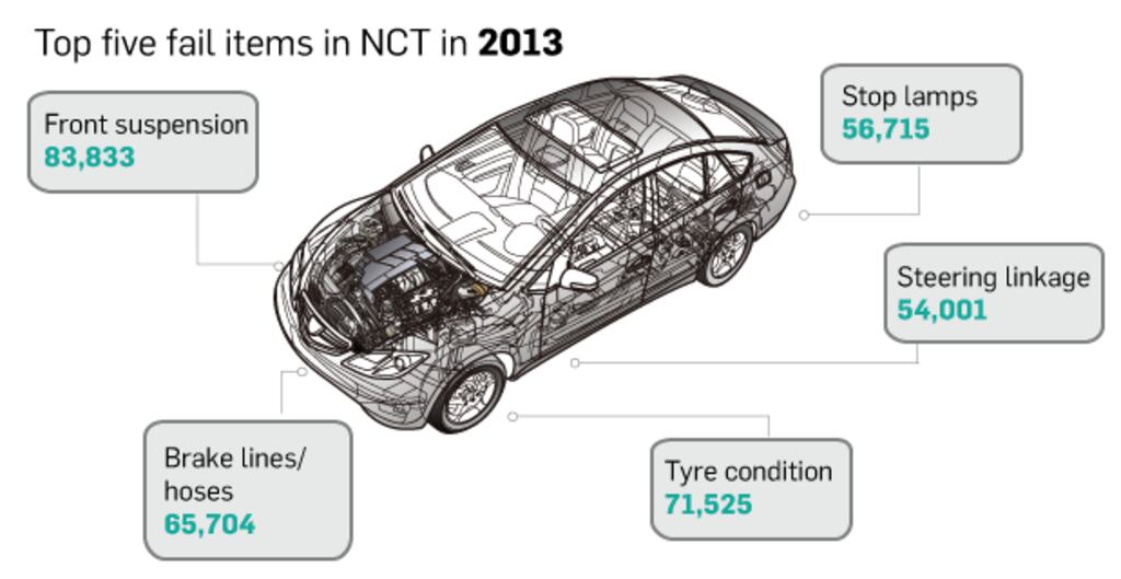 More cars than ever are failing the National Car Test. A total of 48 per cent of cars – or just over 650,000 – passed the test last year compared to about 52 per cent in the years before the economic crash. Of those who failed last year, just over 4,500 were deemed dangerously unroadworthy.