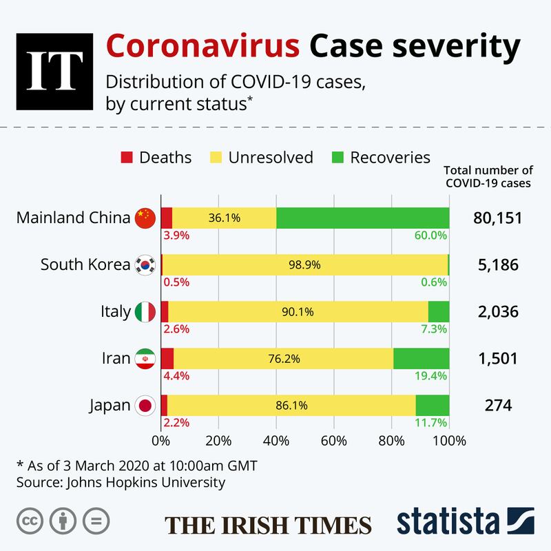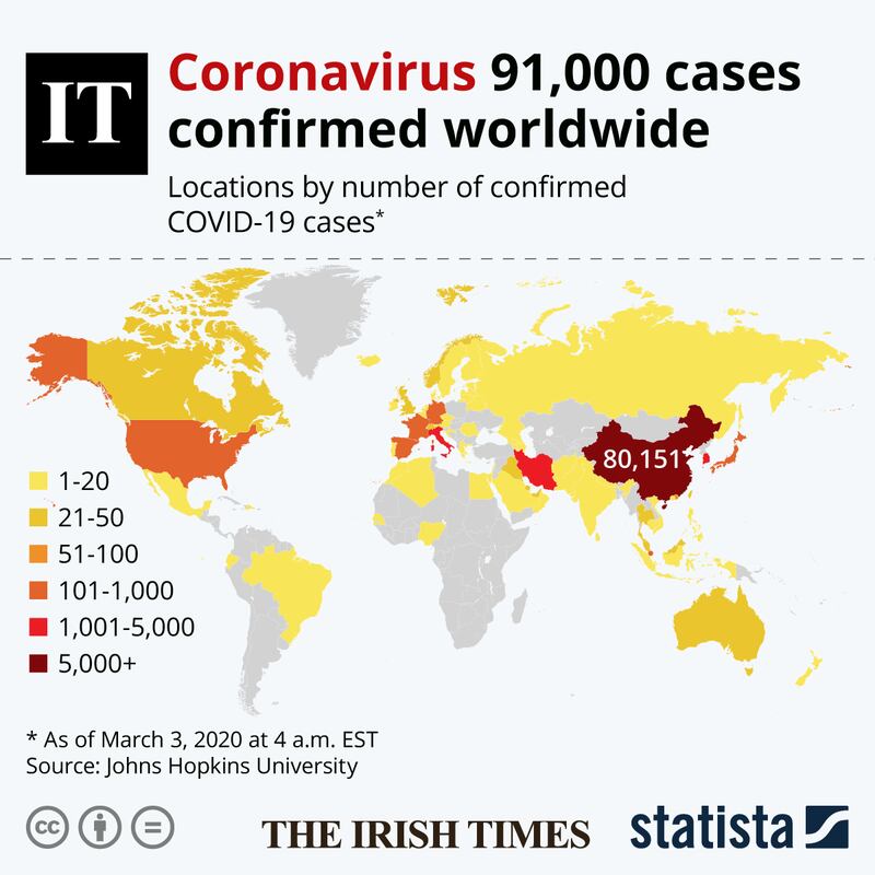 Anyone coming back from these areas and who feels unwell is being advised to contact their GP and may require testing. Italy, the European country worst affected by coronavirus, has exported cases to many other countries, including Ireland.