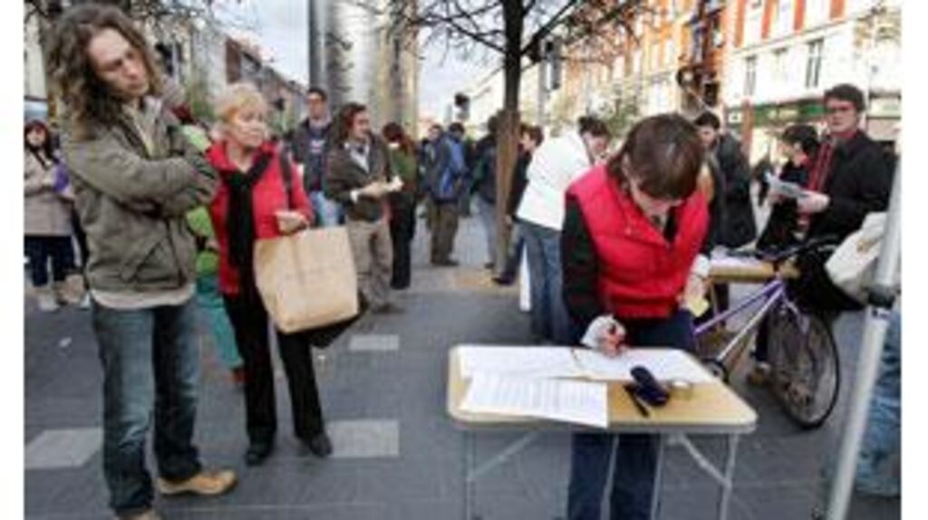 Campaigning for cervical cancer checks in Dublin: the average cost of cervical checks per woman screened in the UK is €45.95 (£41) compared to the average cost per woman screened in Ireland of €144.