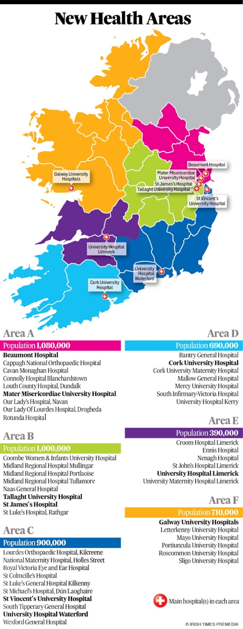 Under plans announced by the Government on Wednesday, health and social care will in future be planned and delivered in six health regions across the country.