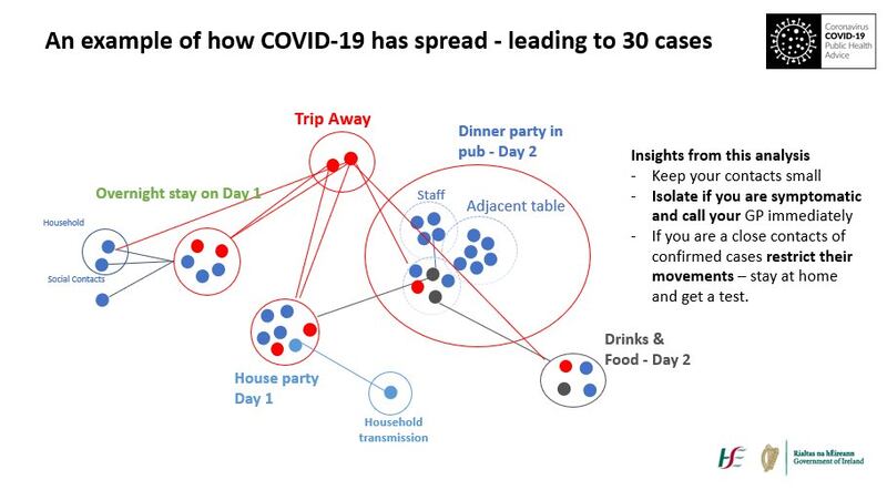 A case of how one couple’s weekend away resulted in 30 cases was among the examples of recent clusters outlined by the National Public Health Emergency Team (NPHET) on Wednesday.