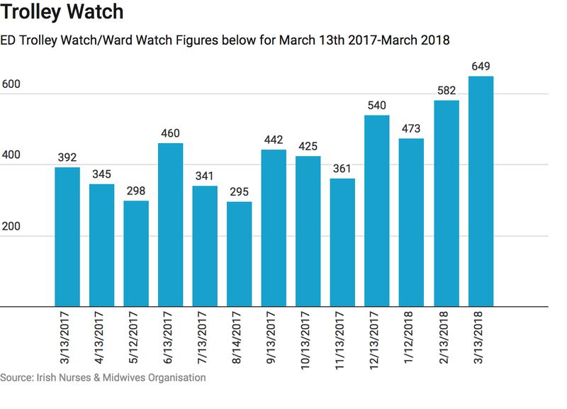 The numbers recorded waiting for a hospital bed on Tuesday is significantly higher than the 392 listed on trolleys the same time last year.