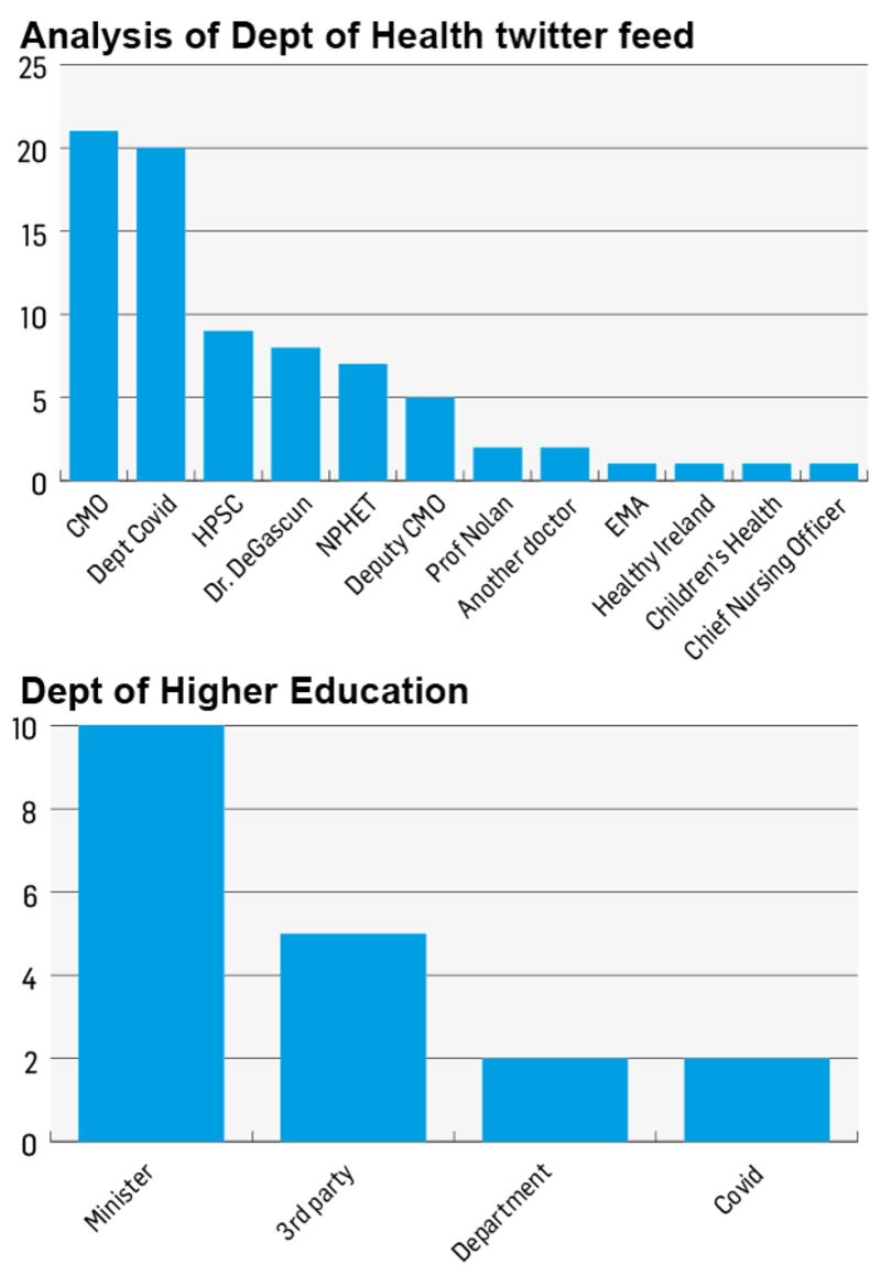 Mr Donnelly was not mentioned in any of the Department of Health’s tweets checked, according to the analysis. The period assessed is not revealed.