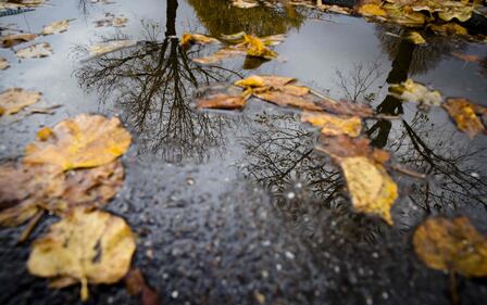 A late autumn sees leaves still turning and the occasional swimmer still braving the elements