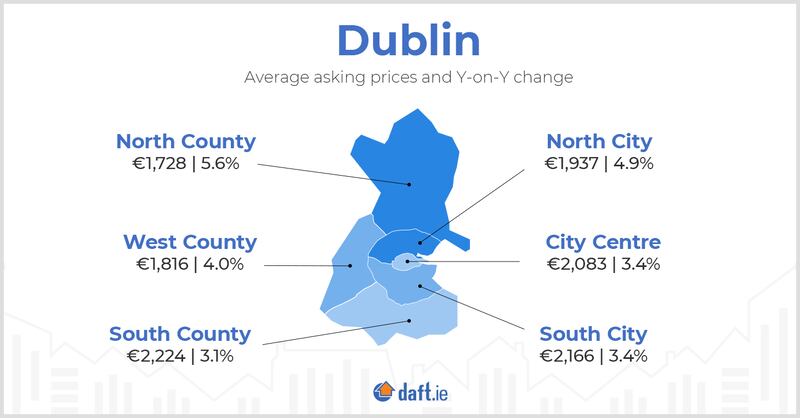 Renters in Dublin can expect to pay in excess of €24,000 a year, while someone looking for a home in Cork will need to spend more than €16,000 over the next 12 months.