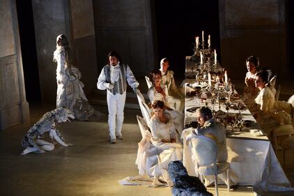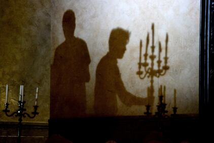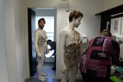 Cyril Byrne takes a peek backstage during rehearsals for Guglielmo Ratcliff