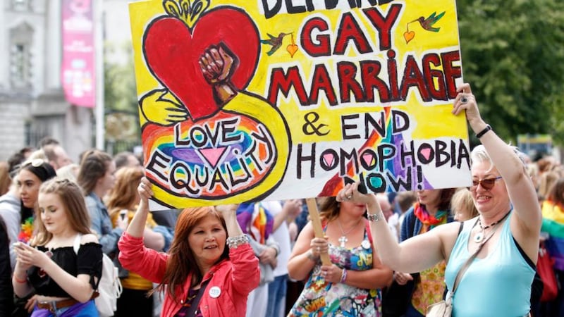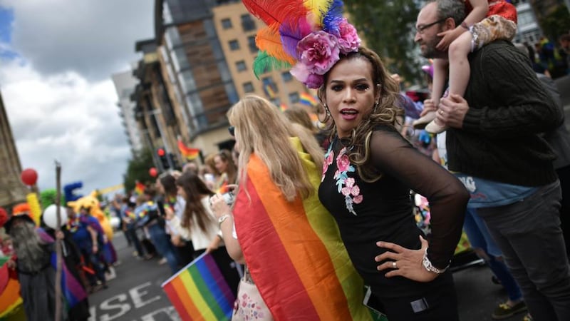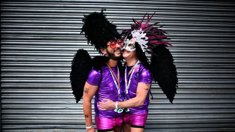 Also at the parade was a team of SDLP politicians, including the party's leader, Colum Eastwood, who had dyed a patch of his beard in rainbow colours. "This is the only place on these islands where we maintain a hierarchy of love," said Mr Eastwood. "We must all stand together to deliver a powerful message of hope and acceptance to our LGBT friends and family, young and old, that the love they share is as equal as any other and that we will not allow it, or them, to be treated as lesser any more."