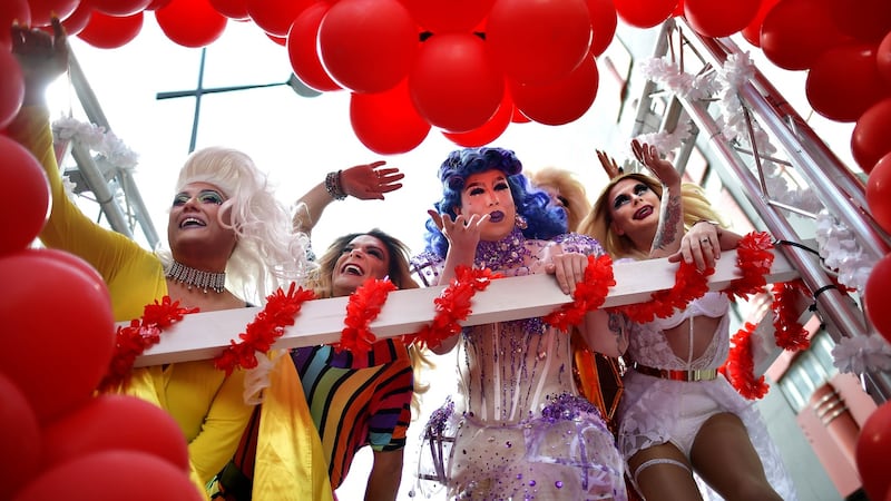 Just then a big float with drag queens wearing the most flamboyant of ball gowns drove by. The contrast was a shock for one observer, who declared: "My goodness. We're a long way from 'Save Ulster from Sodomy'."