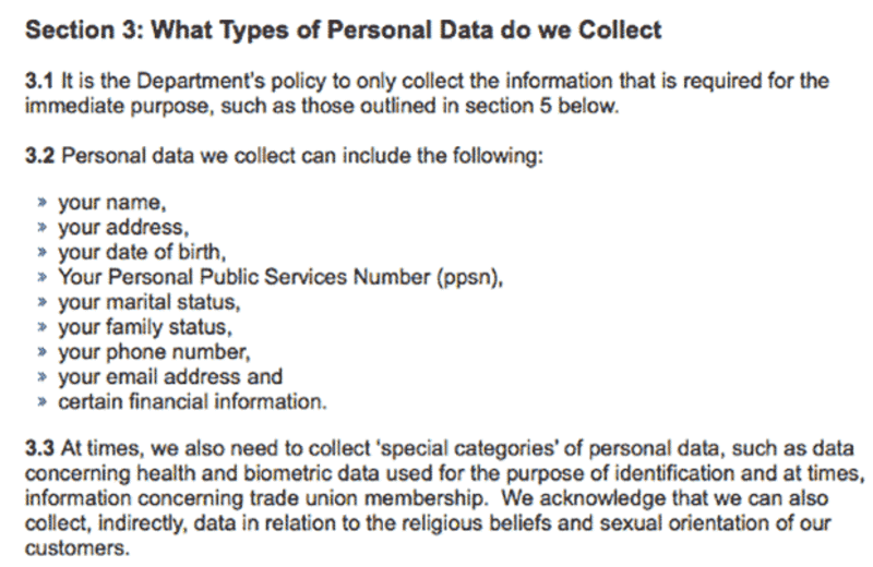 The department’s privacy statement was modified on May 24th last, the day before the new regulation came into force and the same day the new Irish Act was signed into law.