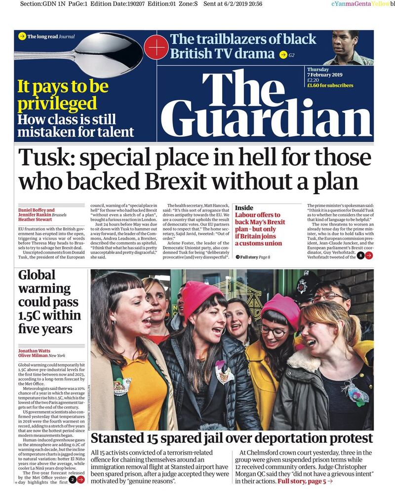 The Guardian: Tusk warns of 'special place in hell' for those who backed Brexit without a plan