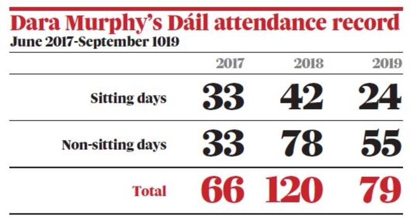 It is understood Murphy has an arrangement with the Government chief whip Seán Kyne to be present for the Dáil's weekly voting day on Thursday. He has not been present for all of those voted days. He voted on 15 days in 2019, and a total of 18 days in 2018. The records show that he has voted on about 32 per cent of the 470 or so votes taken since mid-2017.