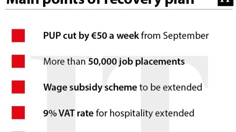 Under the plan, the Pandemic Unemployment Payment (PUP) will be closed to new entrants from July while a reduction in rates is due to begin at the start of September.