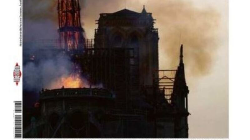 The French Roman Catholic newspaper La Croix carries a picture of the burning cathedral with the headline “Le Coeur en cendres”, which translates to “heart in ashes” on its front page. The daily newspaper Libération leads with a similar image and the headline “Notre Drame”.