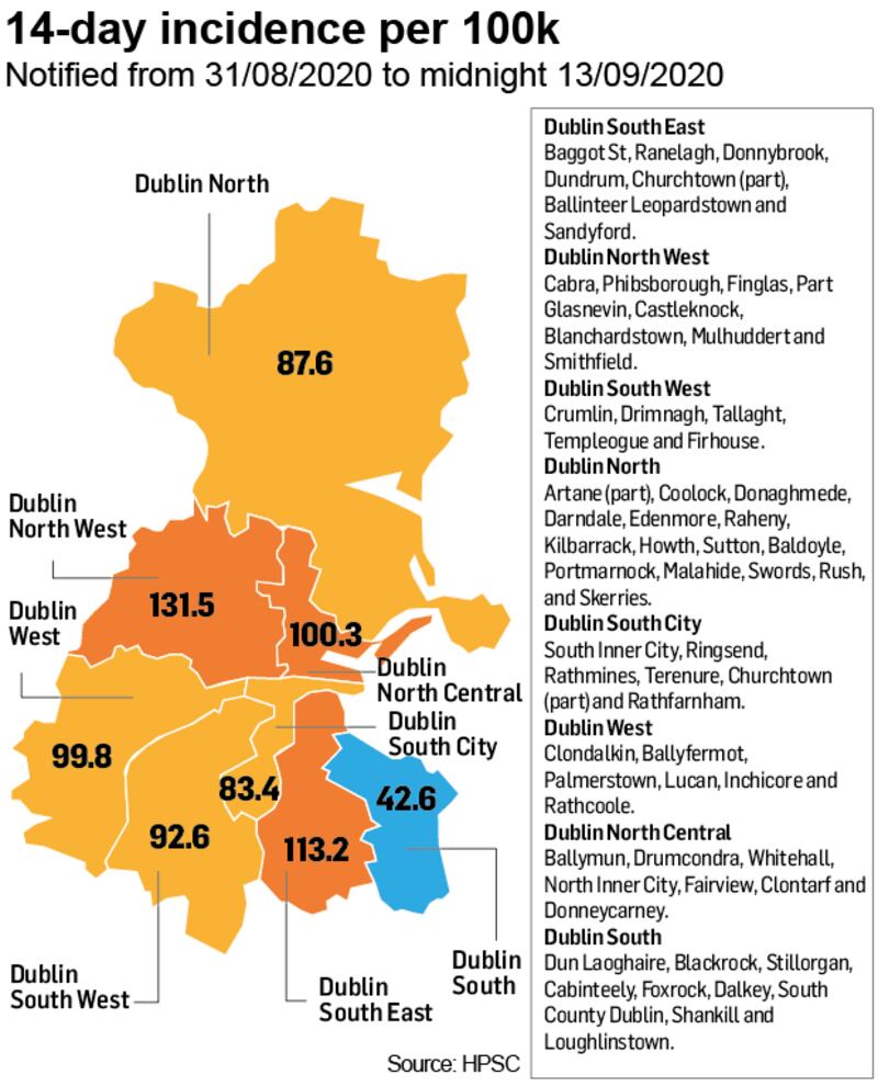 He said the virus incidence has increased ten-fold in Dublin in the past month and unless there are preventative measures there will be “a second wave of hospital admissions, ICU admissions and possible deaths”.