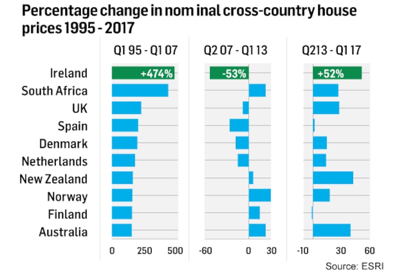 Between 2007 and 2013, and in the wake of the international banking crisis, property prices here fell 53 per cent before climbing 52 per cent in the post-crash period.
