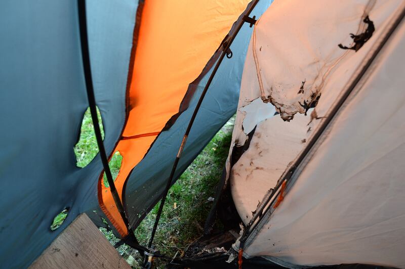 On Monday morning, someone fired a Halloween rocket, which landed at the back of the tent, setting it on fire.