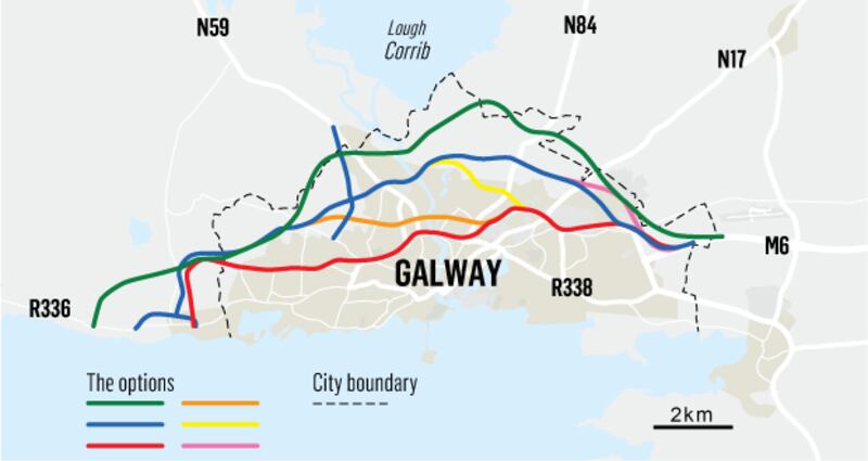 The highlights of seven options unveiled this week as part of a Government-sanctioned bid to resolve Galway’s gridlock and speed up travel further west include three crossings over and one tunnel under the river Corrib and the demolition of between 30 and 120 homes.
