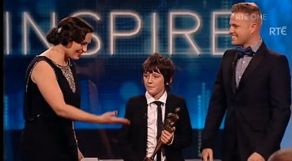 Kerryman Donal Walsh (16) was posthumously awarded Joint Young Person of the Year for his efforts to show young people the true value and meaning of life, and for speaking out against youth suicide. The award was presspented to his parents Fionnbarr and Elma Walsh by Saturday Night Show host Brendan O’Connor.