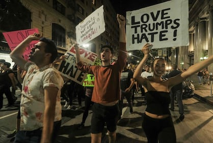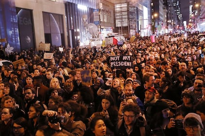 Donald Trump’s election win ignited protests across the United States on Wednesday, November 9th, with thousands of demonstrators crowding into streets and surrounding his buildings in major American cities