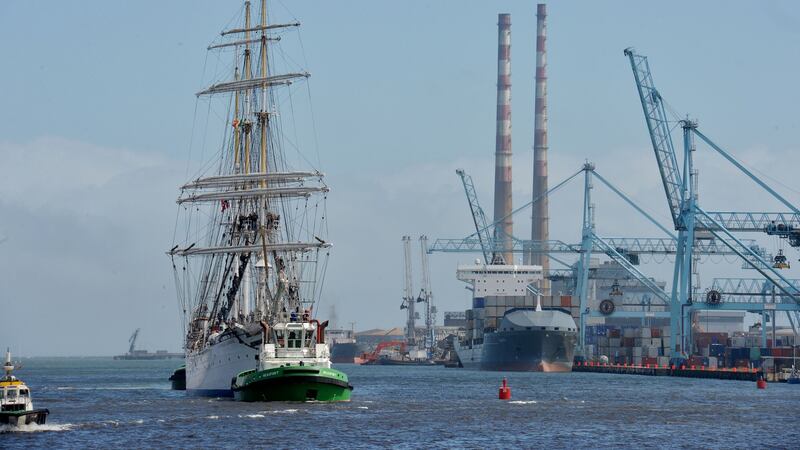 To the strains of several politically uncorrect sea shanties,and more, one of the world's oldest large square rigger ships, the Statsraad Lehmkuhl, cruised up the Liffey into Dublin Port on Friday evening.