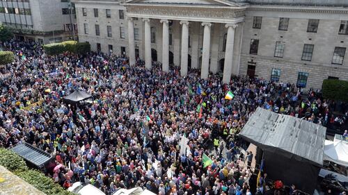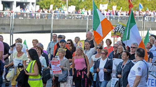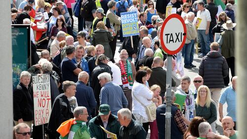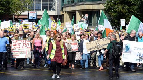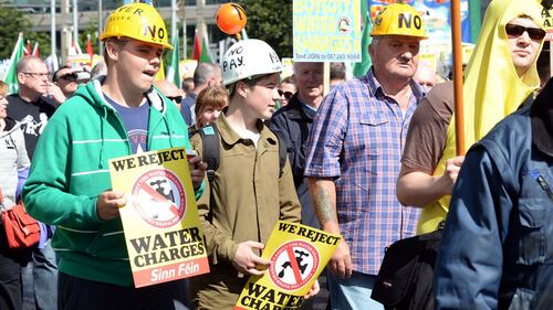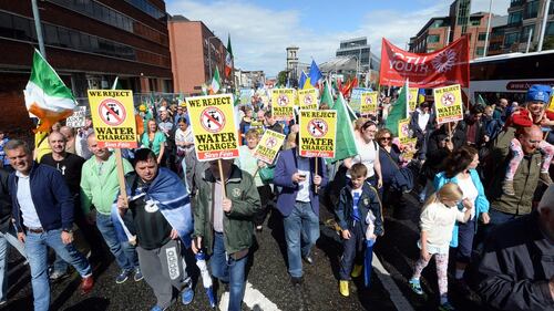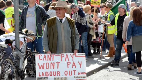 Demonstrators rally in Dublin to demand an end to Irish Water, on August 29th, 2015.