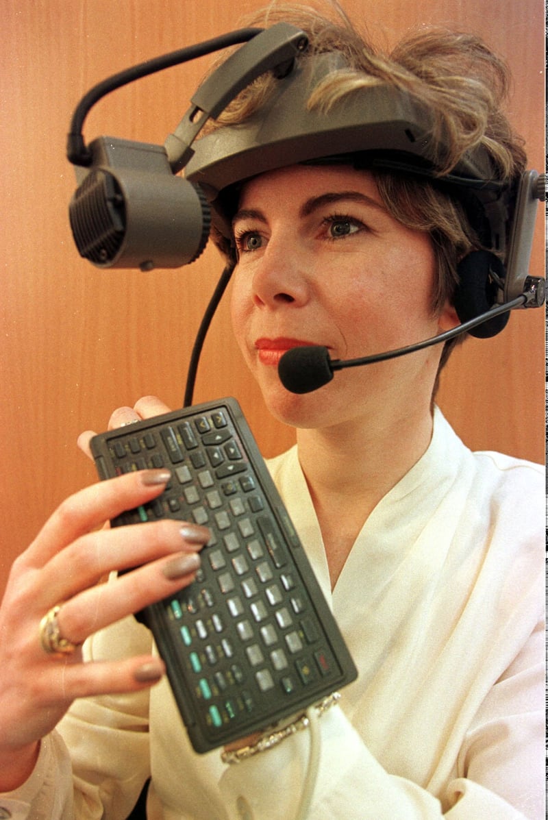 Many of Cunningham’s issues 21 years ago would likely still resonate (bar a couple, “floppies on Mac” among them.) Hardware advancements were taking hold at the time, too. The same edition discussed the newsroom of the future and featured this wearable contraption: