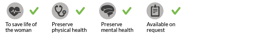 Abortions can be provided up to 24 weeks in life-threatening cases.