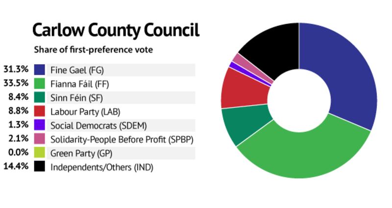 With three local electoral areas in the county, the largest was the seven-seat Carlow area.