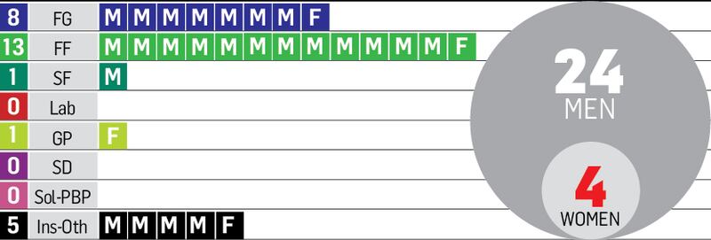 Fine Gael’s share of the vote remains static at 32% when compared to 2014 and the party maintained its seat share at eight.