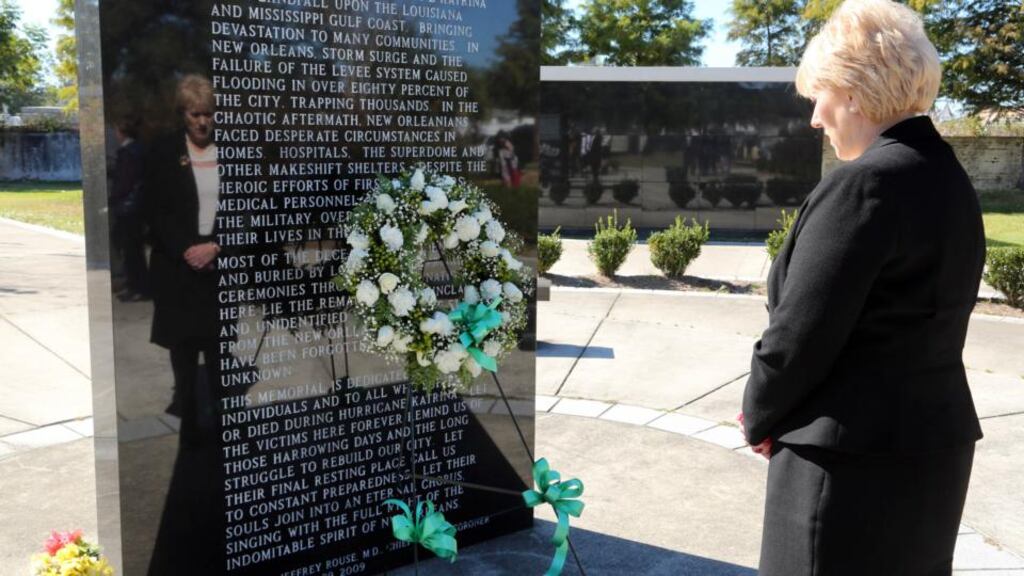 Yesterday, she laid a wreath at the memorial dedicated to the 1,833 people who died in Hurricane Katrina, the storm that devastated the city in 2005, at a cemetery at the end of Canal Street. Many of the victims, including some who were never identified, are buried here.
