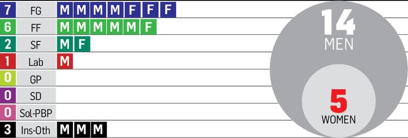 Fine Gael’s Willie Aird and Fianna Fáil’s John Joe Fennelly were elected on the first count in the Portlaoise district, and they were eventually joined by Fine Gael’s Thomasina Connell and Mary Sweeney, Sinn Féin’s Caroline Dwane Stanley, Fianna Fáil’s Catherine Fitzgerald and Labour’s Noel Tuohy.