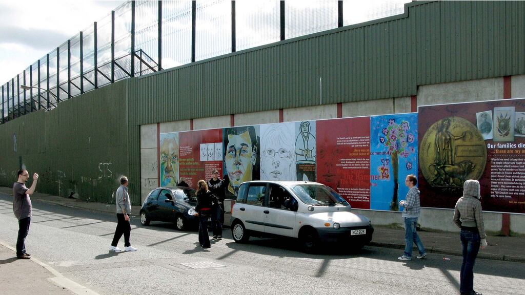 Some stand up to 18ft high and may be miles long through areas of dense housing. They were intended to be temporary and protect people from violence during the 30-year conflict but remain in place 15 years after the Good Friday Agreement.