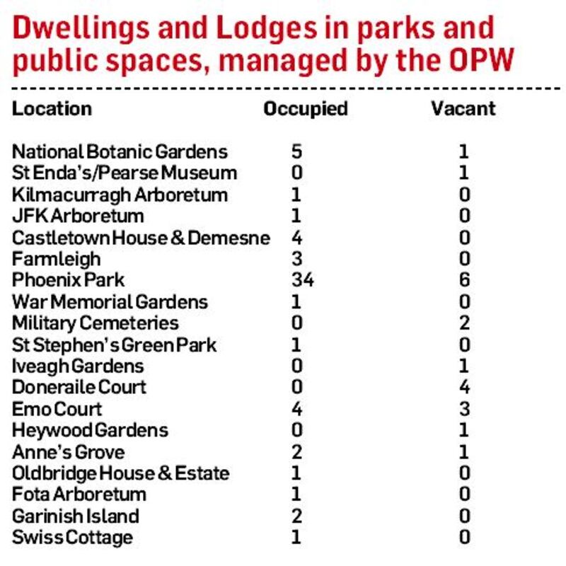 Mr Moran said most of the properties are allocated to OPW staff, "where there is a requirement for officials to be present on the ground as part of their employment".