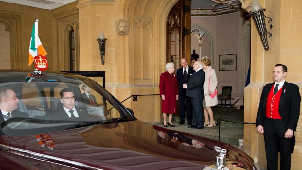 The state visit is the first by an Irish president and follows an official trip to Ireland by the Queen and the Duke of Edinburgh in 2011.
