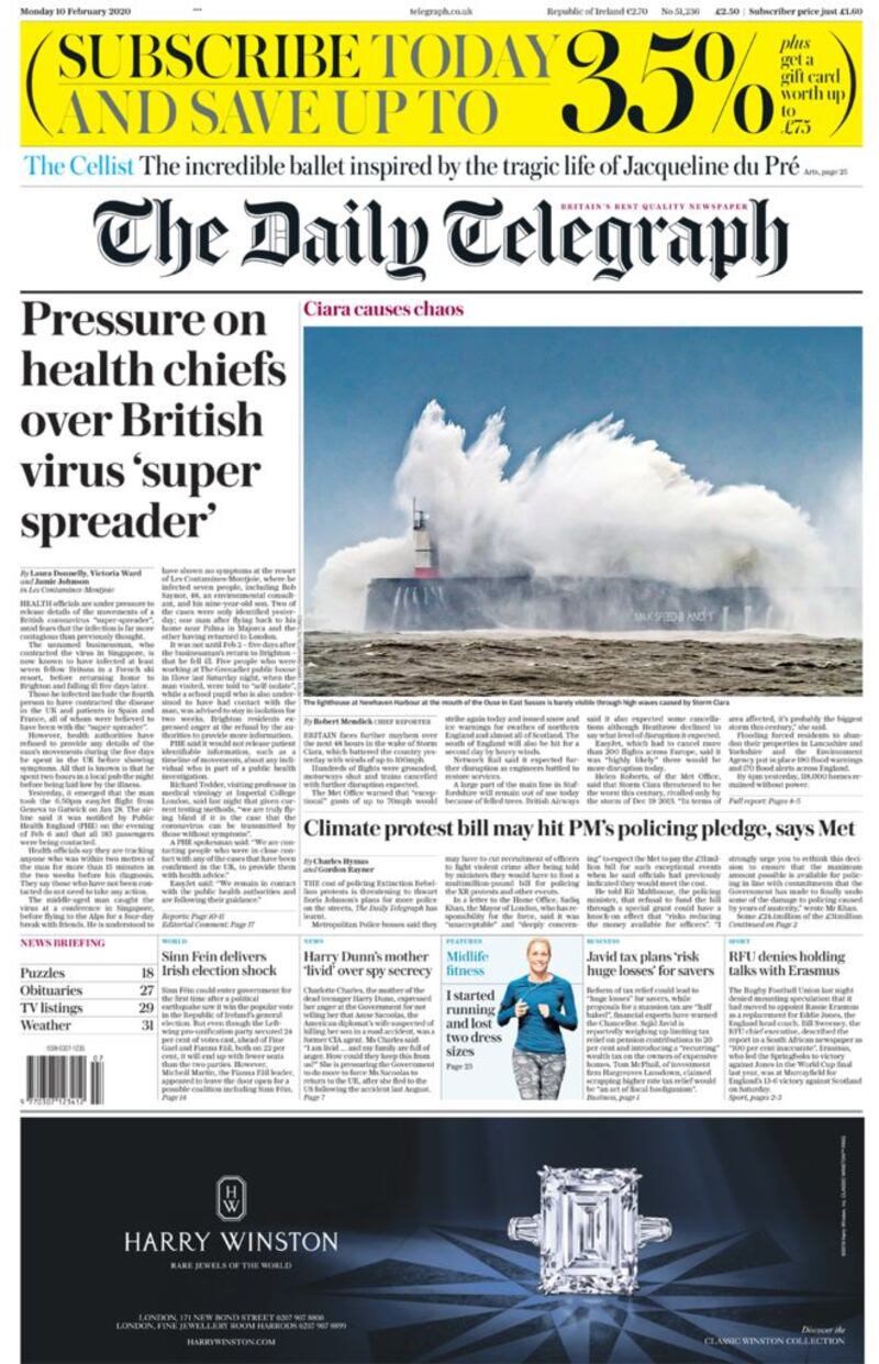 The Daily Telegraph also covers the election as part of its front page offerings with the headline "Sinn Féin delivers Irish election shock". In a news piece, John Walsh writes, "Sinn Féin has delivered a political earthquake by winning the popular vote in the general election, raising the prospect it could enter government for the first time in the Republic of Ireland. "