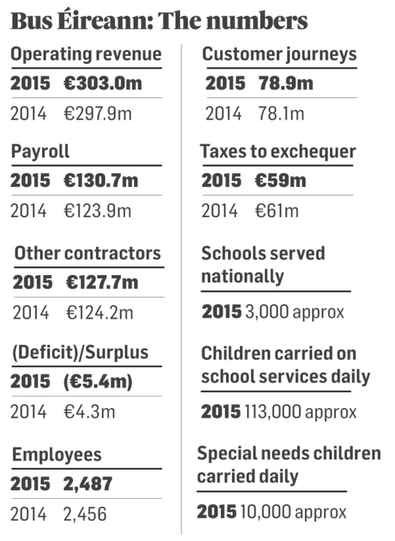 He told the committee just over €40 million was granted to the company last year to provide socially necessary but commercially unviable public services. This was 21 per cent more in taxpayer funding than the previous year. It also receives about €150 million in respect of its school transport work.