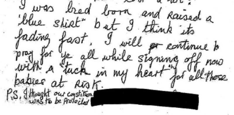 “You are lucky you have survived the slaughter of abortion. May God bless you and give you guidance,” the letter concludes.