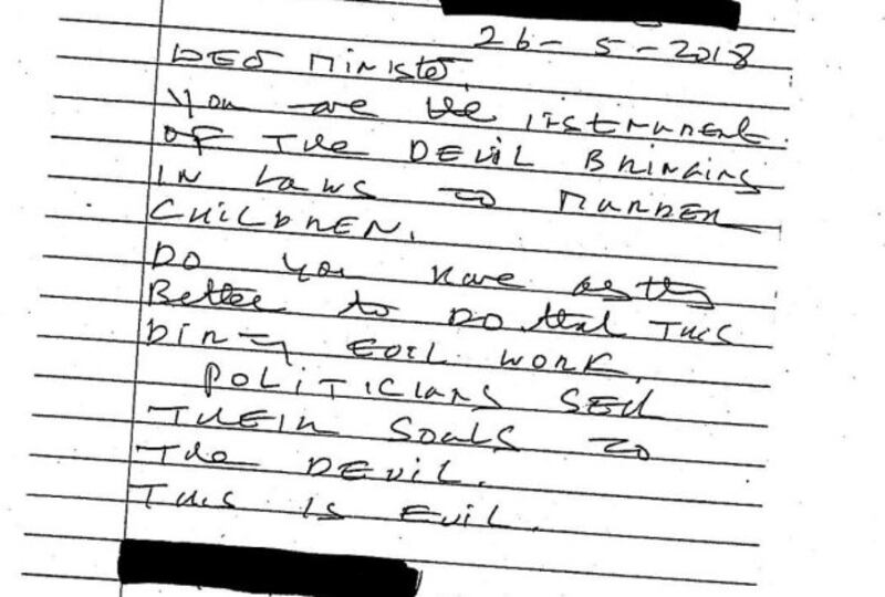 In another handwritten letter, Mr Varadkar was informed he had no right to “kill little babies and setting up slaughter houses”.