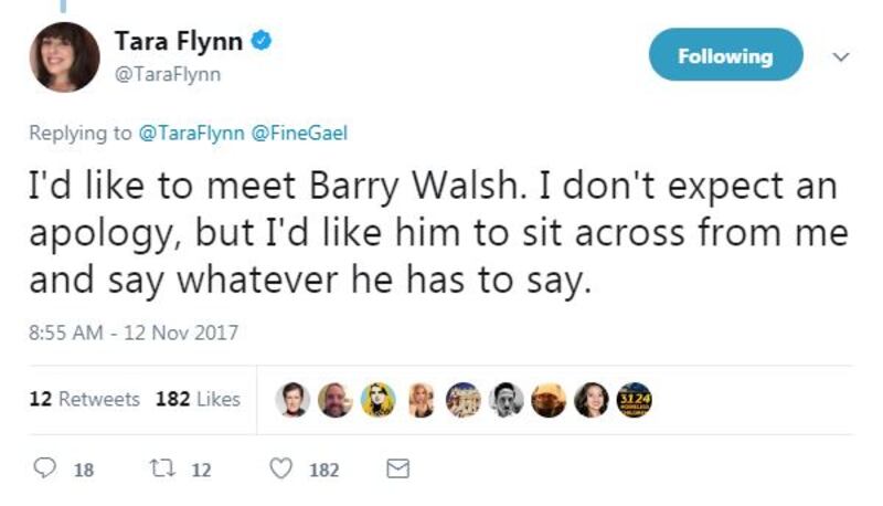 The issue was brought to light by Dublin Bay South TD Kate O’Connell at a Fine Gael meeting on Tuesday where she presented a series of tweets by Mr Walsh, some of which were directed at her.