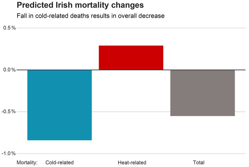 Ireland was among just four countries to buck this trend. "Projections for Ireland are that if temperatures go up, less people will die in winter and more people will die in summer but the net effect is that we have less people dying," according to Goodman. This is because Ireland has a high winter mortality at present.
