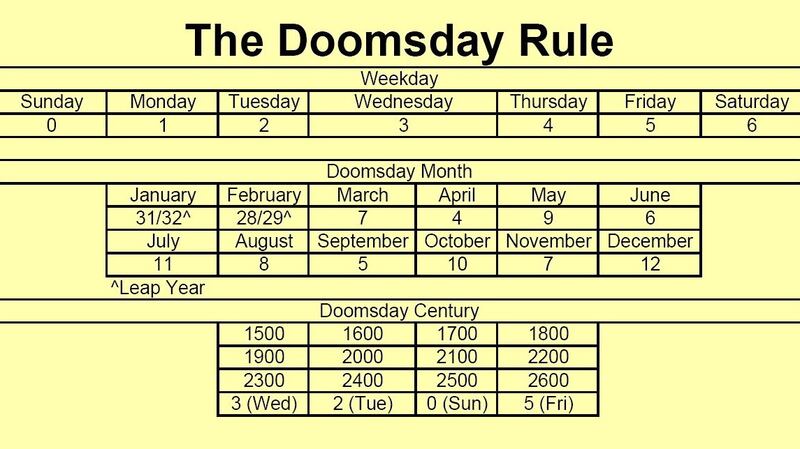 The Doomsday algorithm involves only simple arithmetic, although it is too intricate to describe in detail here. It also requires the user to learn some rules and to practice the technique so as to produce an answer rapidly.