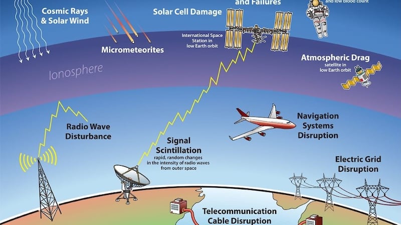Such disturbances can enhance the solar wind, which interacts with the magnetosphere, with grave consequences for navigation. Space weather affects the satellites of the Global Positioning System, causing serious navigation problems.