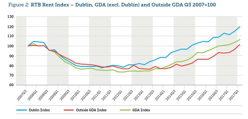 RTB director Rosalind Carroll said: "This is the third Rent Index report published since rent pressure zones were introduced one year ago. Despite a moderate slowdown in the pace of growth in the first quarter of 2017, quarters two and three show that rents are continuing to trend upwards, with an increase in the pace of growth in quarter three.