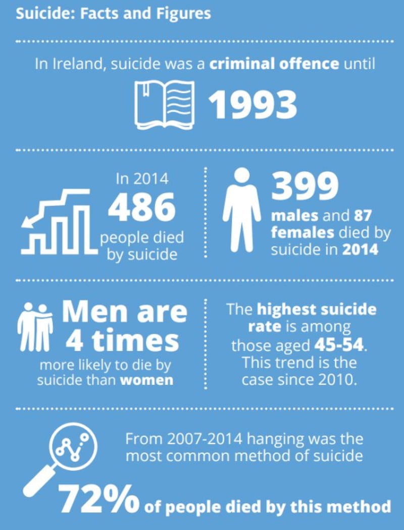 The number of cases of suicide has stabilised since the recession with 399 last year in comparison with 451 in 2015 and 554 in 2011, according to the National Office for Suicide Prevention (NOSP) annual report. Of the 399 recorded suicides last year, 318 (79.6 per cent) involved men.