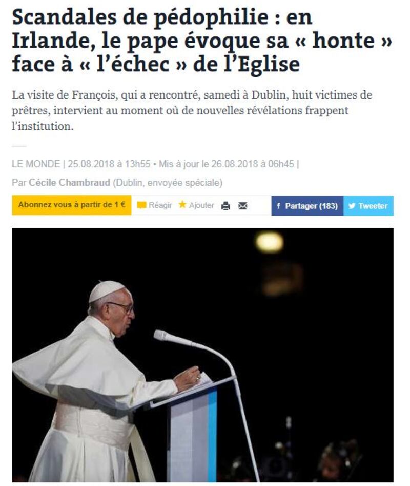 Pedophilia scandals: in Ireland, the pope evokes his "shame" at the "failure" of the Church: Dublin did not adorn itself with the colours - yellow and white - of the Vatican, and Dubliners did not wait for the pope as he passed.